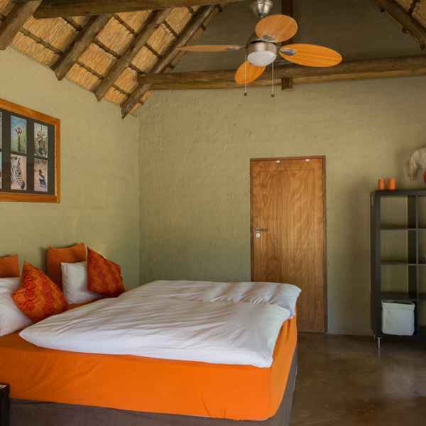 Our authentic African Bush Lodges are designed with modern facilities and are well maintained. All accommodations are personally decorated with their own specific colours. One will find stone orange and soft green for example of colours that naturally blend in with the bush yet give one a fresh modern feeling. Decoration is based on the minimalistic idea yet with an African touch.